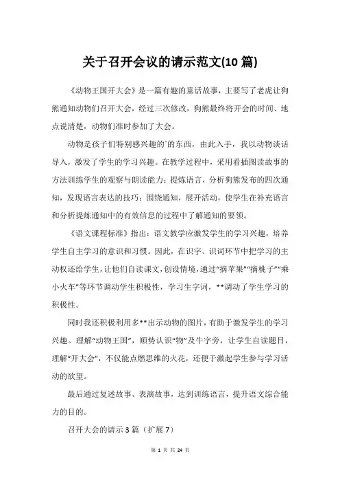 召开会议请示(通用8篇)召开会议请示篇1XX县农牧科技局:XX县是重点产茶县,茶产业将成为支柱产业。