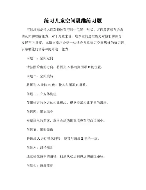 练习儿童空间思维练习题空间思维是指人们对物体在空间中位置、形状、方向及其相互关系的认知和理解能力。