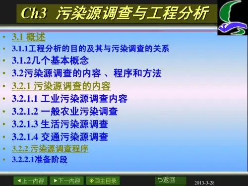 污染源调查与工程分析近年来,污染问题已经成为了全球性、普遍性的环境难题。