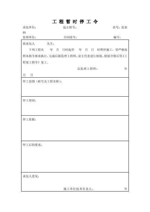 附件:停工令范本(春节停工暂停令如何写)注:本范本可根据实际情况进行修改和完善。