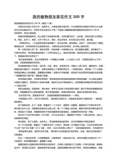 我的植物朋友荷花作文300字我的植物朋友荷花作文300字(精选11篇)在现实生活或工作学习中,说到作文,大家肯定都不陌生吧,作文根据写作时限的不同可以分为限时作文和非限时作文。