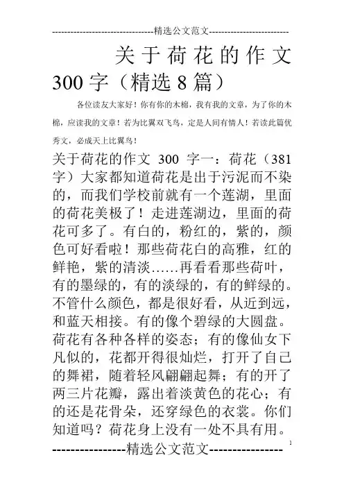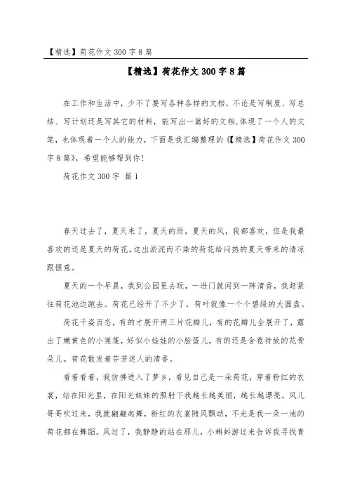 荷花的作文300字【精选】荷花的作文300字7篇荷花的作文300字篇1一年四季中,美丽的花不计其数。