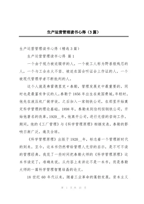 生产运营管理读书心得(通用3篇)生产运营管理读书心得篇1根据公司的安排,我通读了陈荣秋、马士华的《生产与运作管理》,触颇深。