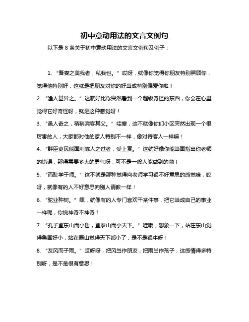 意动用法真的很有趣呀,它能让文字变得更加生动形象,让人对文言文有更深的理解和感受呢!。