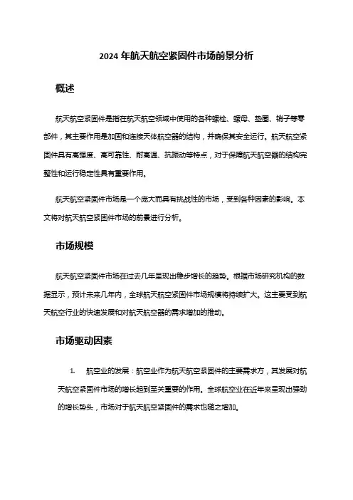 航空紧固件标准1. 目的航空紧固件标准的目的是确保飞机上使用的紧固件具备高质量、可靠性和安全性,以确保飞机在飞行过程中的正常运行和乘客的安全。