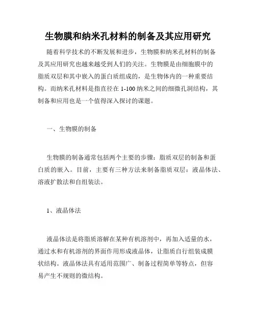 生物膜和纳米孔材料的制备及其应用研究随着科学技术的不断发展和进步,生物膜和纳米孔材料的制备及其应用研究也越来越受到人们的关注。