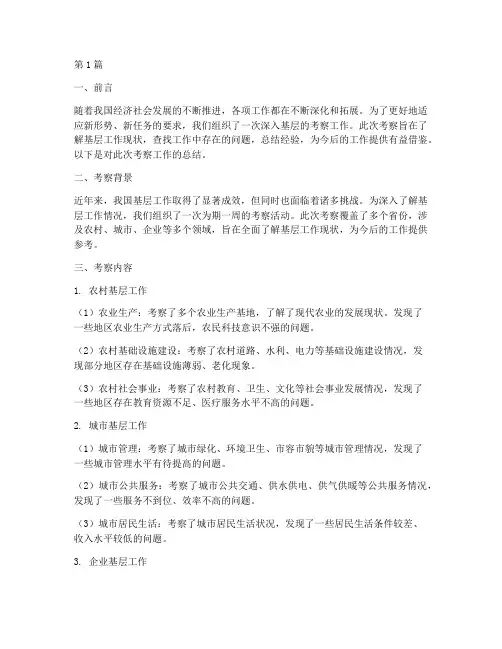 4. 自我反思与反馈在考察期间,我时常进行自我反思和评估,总结了自己的优点和不足。