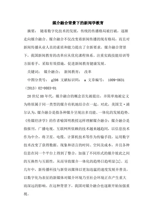 媒介融合背景下的新闻学教育摘要:随着数字化技术的发展,传统的传播格局被打破,逐渐走向媒介融合。