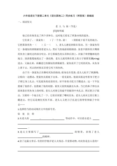部编版六年级语文下册短文阅读附答案一、阅读短文,回答问题。