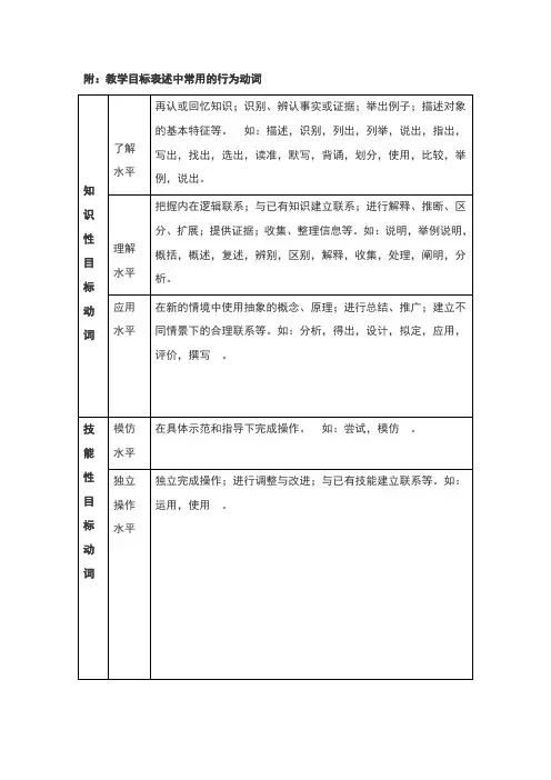 2. 感官动词的分类介绍(10分钟)将感官动词分为视觉、听觉、嗅觉、味觉和触觉五类,介绍每一类感官动词的具体词汇,如看、望、观看、听、听见、聆听等。