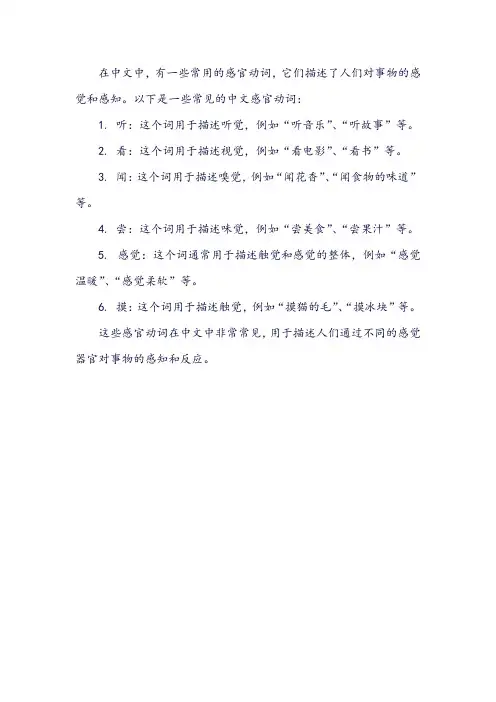 在中文中,有一些常用的感官动词,它们描述了人们对事物的感觉和感知。