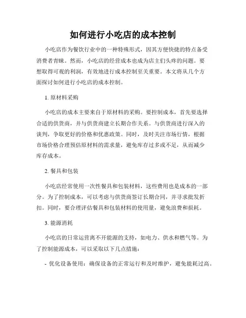 1. 原材料采购管理在餐饮业中,原材料采购是成本控制的一个重要环节。