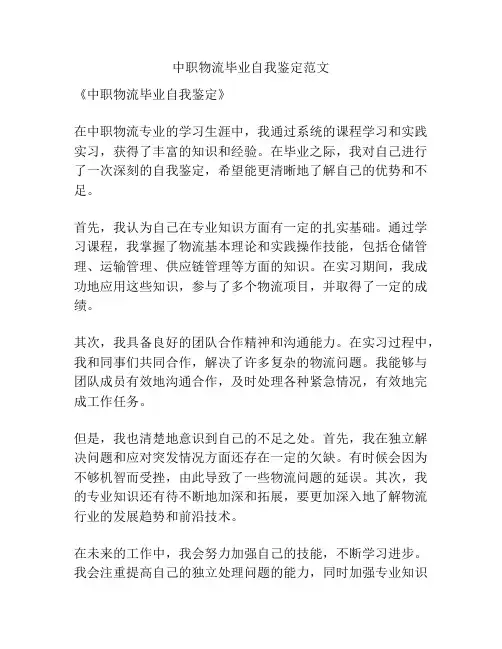 《物流自我鉴定范文总结》