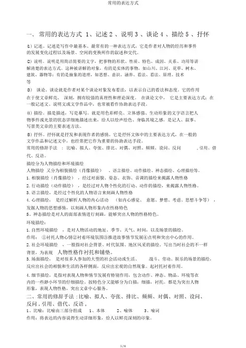 初中语文中的表达方式及其作用一、表达方式分为叙述、描写、说明、抒情、议论五种1、叙述。