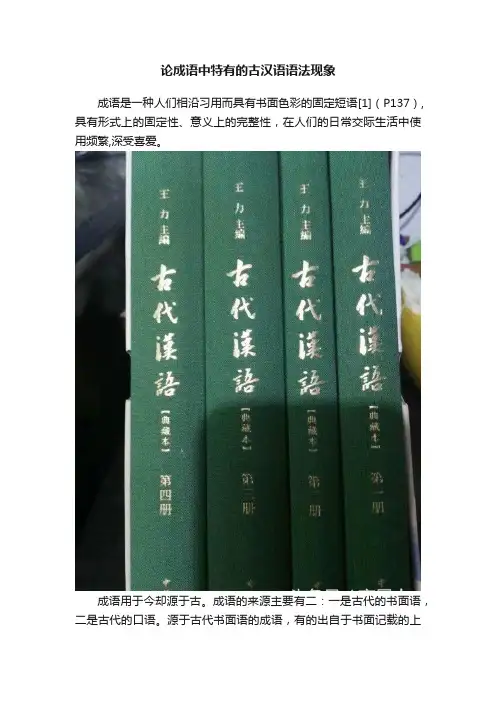 成语中的古汉语语法现象例谈成语大部分与古代典籍有关,从整体来说,成语是用文言文的形式表达的,是古代汉语在现代汉语中的遗留现象。