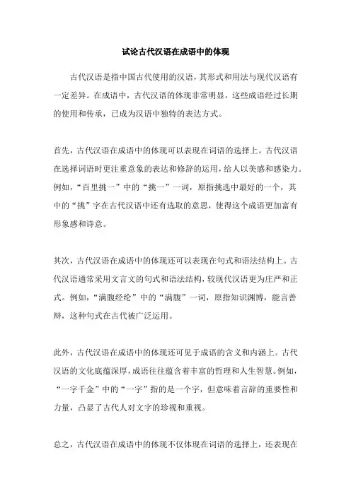 总之,古代汉语在成语中的体现不仅体现在词语的选择上,还表现在