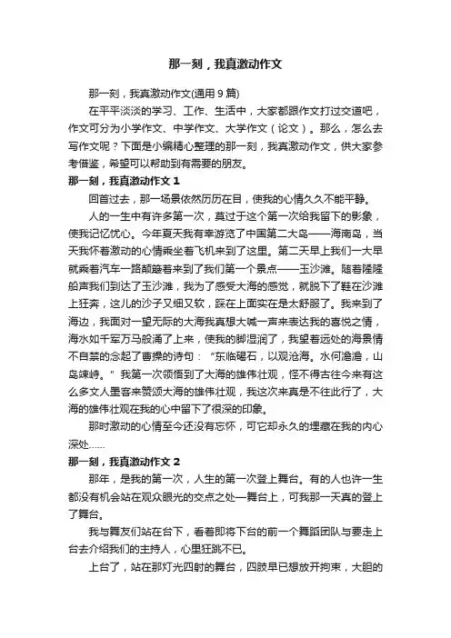 那一刻,我真激动作文那一刻,我真激动作文(通用9篇)在平平淡淡的学习、工作、生活中,大家都跟作文打过交道吧,作文可分为小学作文、中学作文、大学作文(论文)。