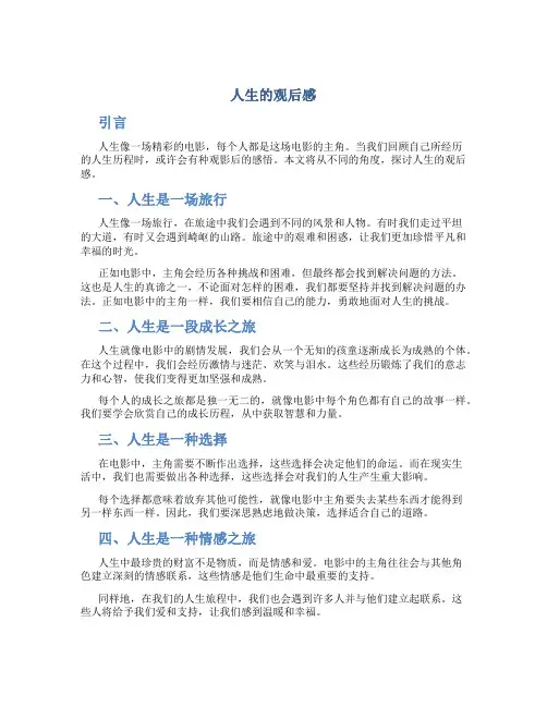 人生的观后感引言人生像一场精彩的电影,每个人都是这场电影的主角。