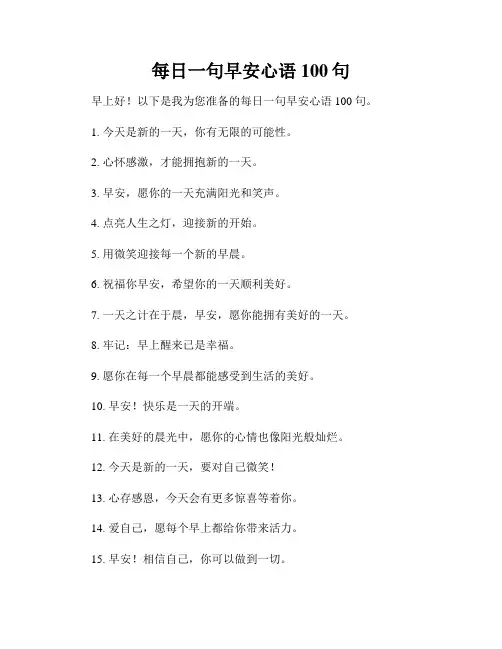 每日一句早安心语100句早上好!以下是我为您准备的每日一句早安心语100句。