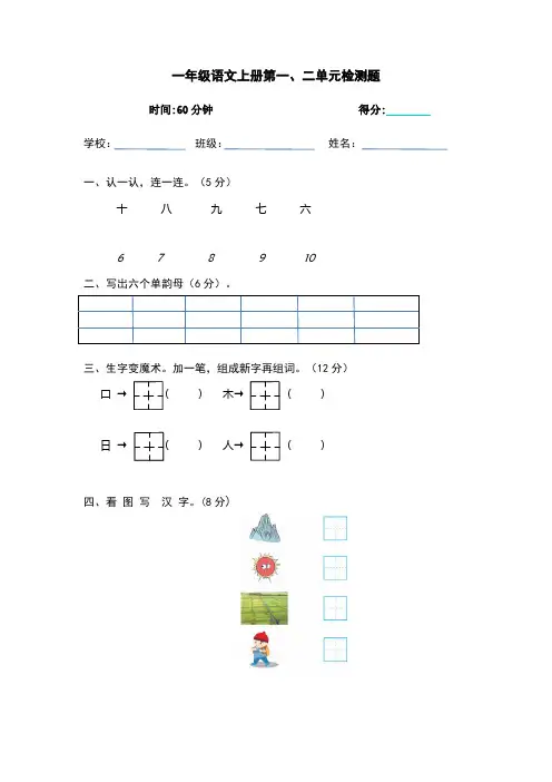 一年级语文上册第一、二单元检测题