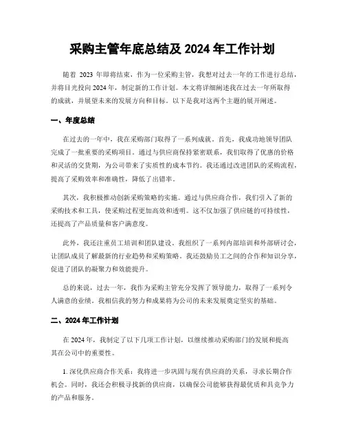 采购主管年底工作总结与2024年工作计划一、年底工作总结2023年对于采购团队来说,是充满挑战与机遇的一年。