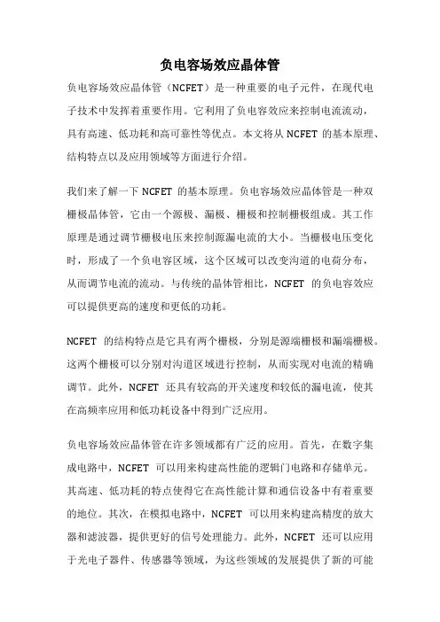 负电容场效应晶体管负电容场效应晶体管(NCFET)是一种重要的电子元件,在现代电子技术中发挥着重要作用。