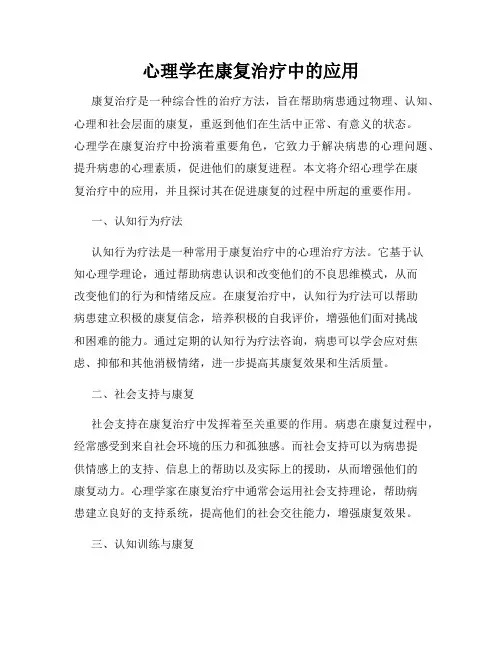 1. 心理学理论在康复医学中的应用在康复医学中,心理学理论被广泛应用于患者的心理评估和干预中。