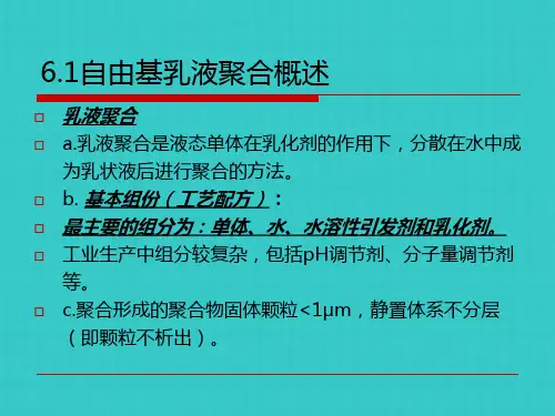 1. 加成聚合加成聚合是指在聚合反应中,单体分子中的双键或多键被打开,使单体之间通过共价键结合形成高分子化合物。