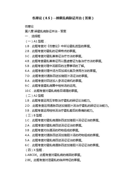 伤寒论霍乱病辩证论治练习题