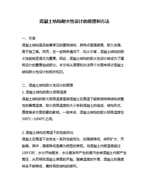 二、耐火设计的措施和方法:1.结构材料的选择:在耐火设计中,应优先选择具有较高抗火性能的材料。