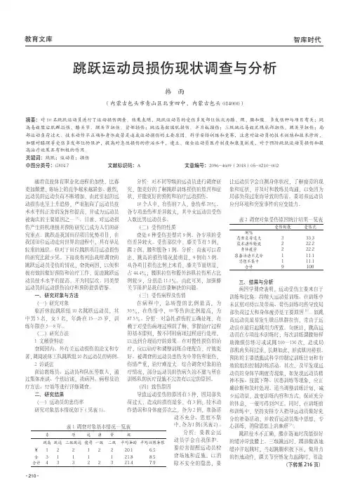 跳跃运动员损伤现状调查与分析韩 雨(内蒙古包头市青山区北重四中,内蒙古包头 014000)摘要:对10名跳跃运动员进行了运动损伤调查。