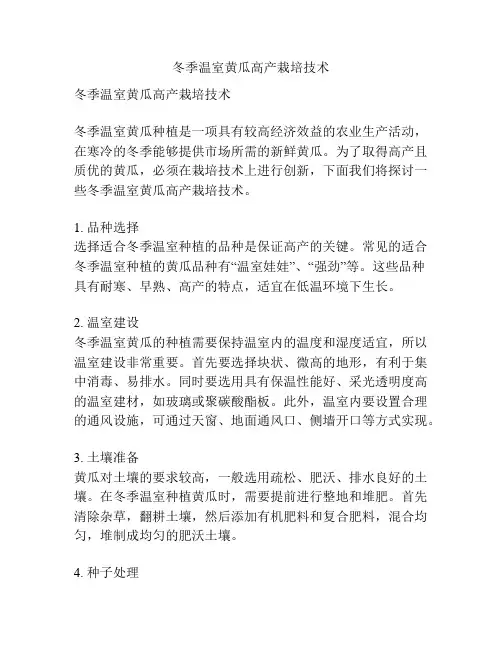温室黄瓜是一种高产、高效的蔬菜,其栽培技术对于黄瓜的生长发育和产量稳定有着至关重要的作用。