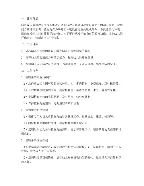 四、工作步骤1. 制定植物角工作计划,明确工作目标和内容。