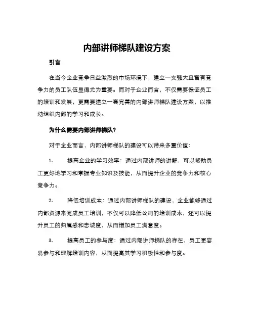 内部讲师梯队建设方案引言在当今企业竞争日益激烈的市场环境下,建立一支强大且富有竞争力的员工队伍显得尤为重要。