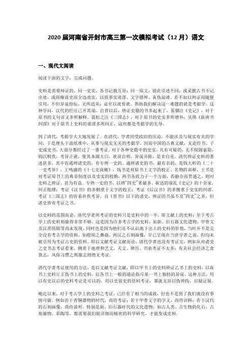 河南省四校2020届高三第一次模拟考试语文试题含答案