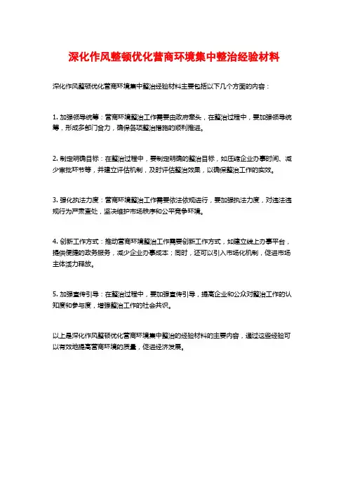 深化作风整顿优化营商环境集中整治经验材料主要包括以下几个方面的内容:
