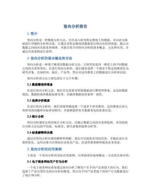 竖向分析报告1. 简介竖向分析是一种数据分析方法,旨在深入研究特定维度上的数据,并以此为基础进行详细的分析和决策。