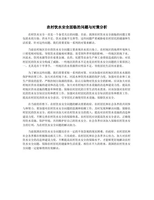农村饮水安全面临的问题与对策分析1. 引言1.1 农村饮水安全问题的背景农村饮水安全问题一直以来都是农村发展面临的重要困难之一。