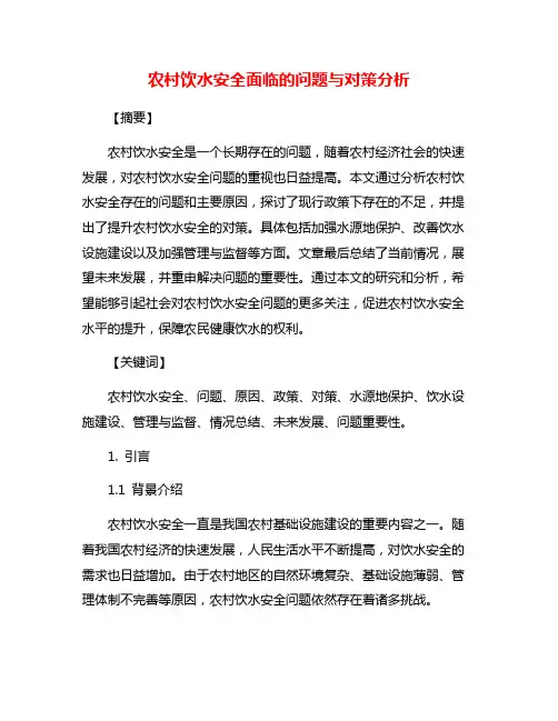 2. 正文2.1 农村饮水安全面临的问题农村饮水安全是一个关乎农民生活健康和乡村可持续发展的重要问题。