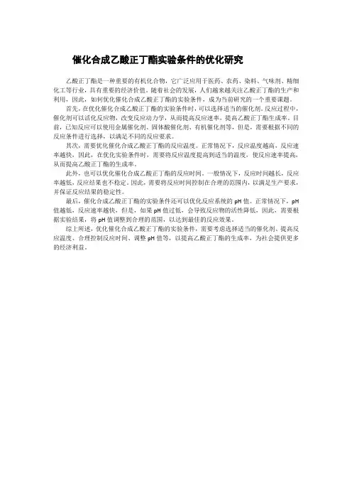 首先,在优化催化合成乙酸正丁酯的实验条件时,可以选择适当的催化剂。