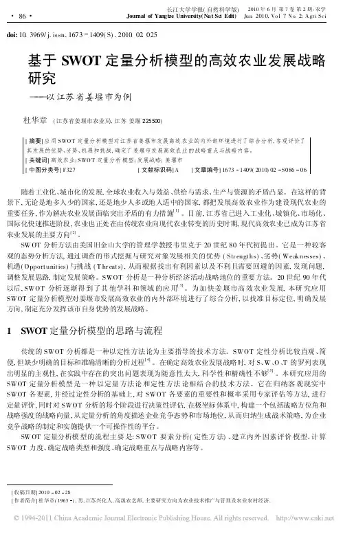 山西农业大学学报(社会科学版)第10卷(第7期) 001541J.Shanxi Agric.Univ.(Social Science Edition)No.7 Vol.10 2011收稿日期:2011-04-10作者简介:杜华章(1963-),男(汉),江苏兴化人,高级农艺师,主要从事农业科技管理与农业技术推广、农业农村经济方面的研究。
