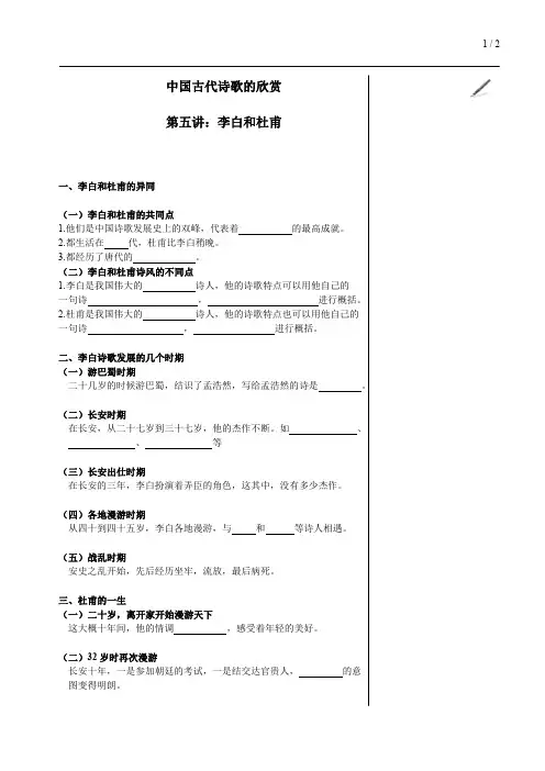(二)李白和杜甫诗风的不同点1.李白是我国伟大的诗人,他的诗歌特点可以用他自己的一句诗,进行概括。