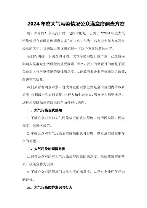 2024年度大气污染情况公众满意度调查方案嘿,大家好!今天我们要一起探讨的是一份关于“2024年度大气污染情况公众满意度调查方案”的大作。