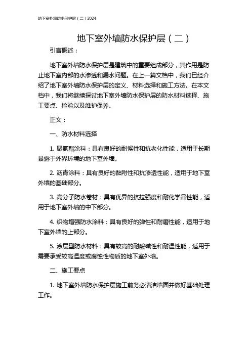 地下室外墙防水保护层(一)引言概述:地下室外墙防水保护层是确保地下室结构安全和防止水渗透的重要措施。