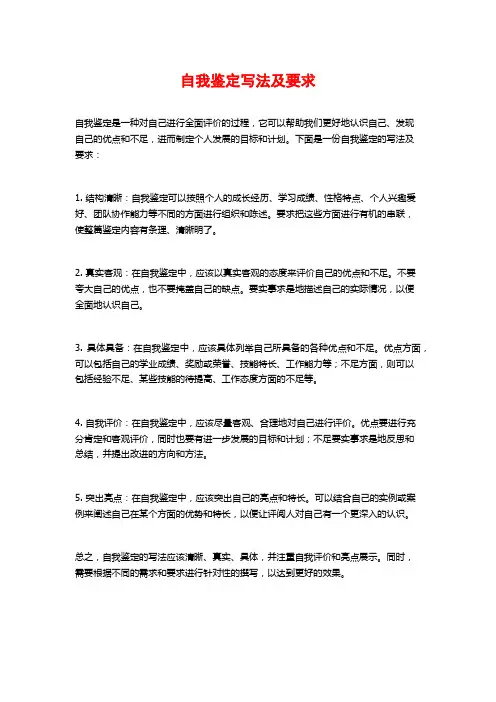 自我鉴定的格式与写作要求自我鉴定是一种对自我的评价和总结。
