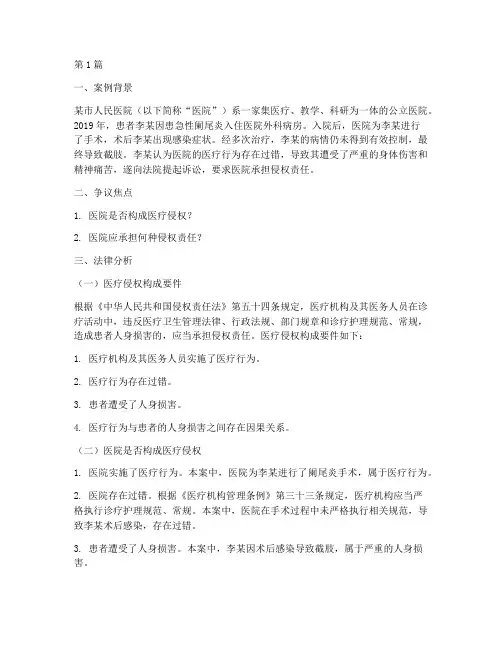 第1篇一、案例背景某市人民医院(以下简称“人民医院”)是一所集医疗、教学、科研、预防、保健、康复为一体的三级甲等医院。