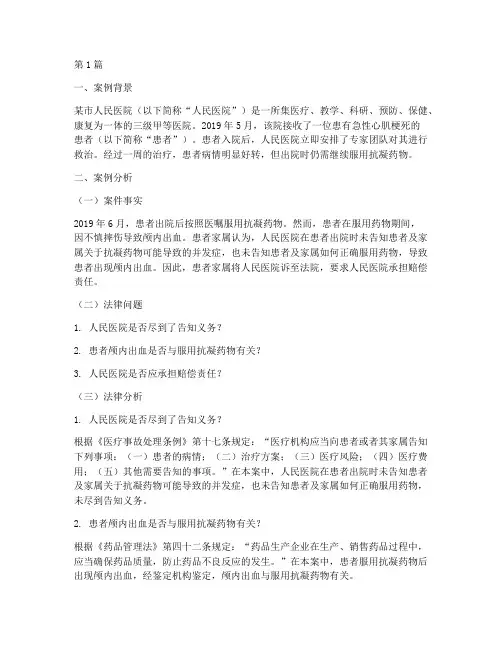 二、案例分析(一)案件事实2019年6月,患者出院后按照医嘱服用抗凝药物。