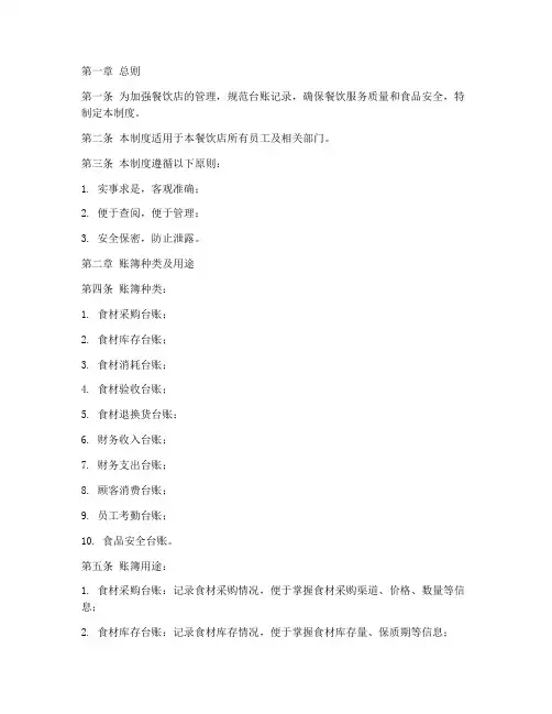 第一章总则第一条为加强餐饮店的管理,规范台账记录,确保餐饮服务质量和食品安全,特制定本制度。