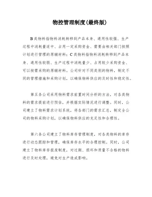 二、人员管理1. 物控部门的员工需经过严格的选拔和培训。