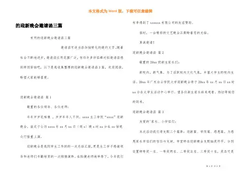 诚挚邀请!迎新晚会邀请函2尊敬的20xx级新生家长们:新校园,新气象。